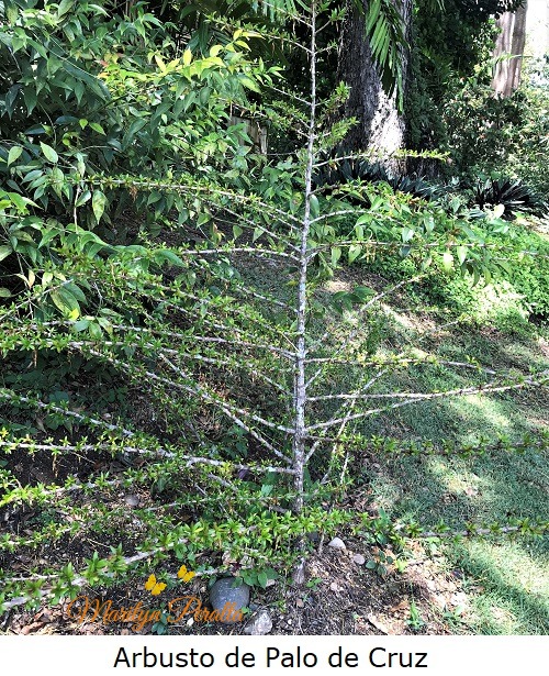 Los arbustos de Palo de Cruz de las fotos se encuentran en el Jardín Botánico Nacional Dr. R. Moscoso, en Santo Domingo.